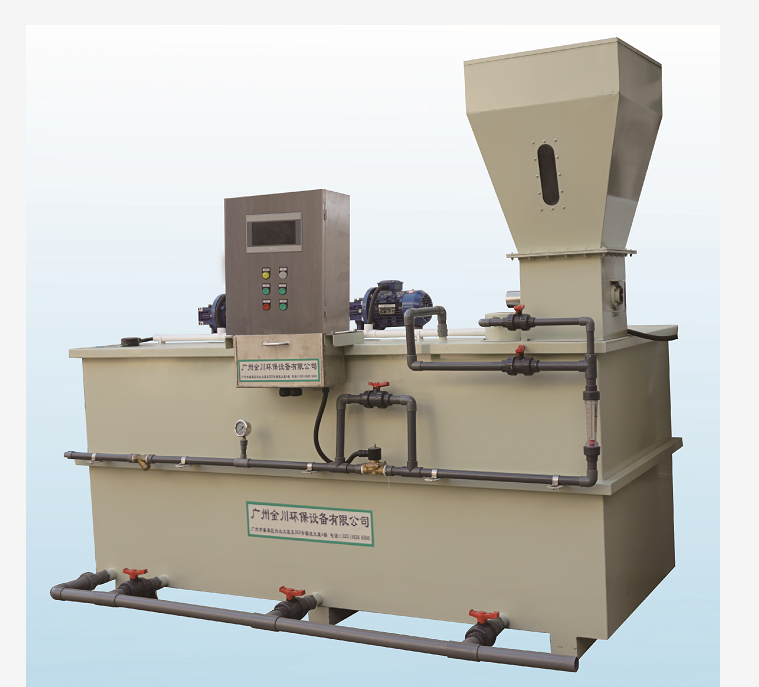 適用于高分子有機絮凝劑的制備與投加,用戶只需將藥劑干粉直接加入設備的料斗中,即可實現(xiàn)全自動的投料、溶解、熟化、儲存、計量加藥等過程,整個過程無需人工操作,完全自動運行。設備采用三槽或二槽式結構,分別用來進行攪拌、熟化和貯存。配套設備主要由干粉進料器、投配螺旋、混合器、振動器、攪拌器、液位控制儀、供水系統(tǒng)、螺桿加藥泵及智能PLC控制系統(tǒng)組成。