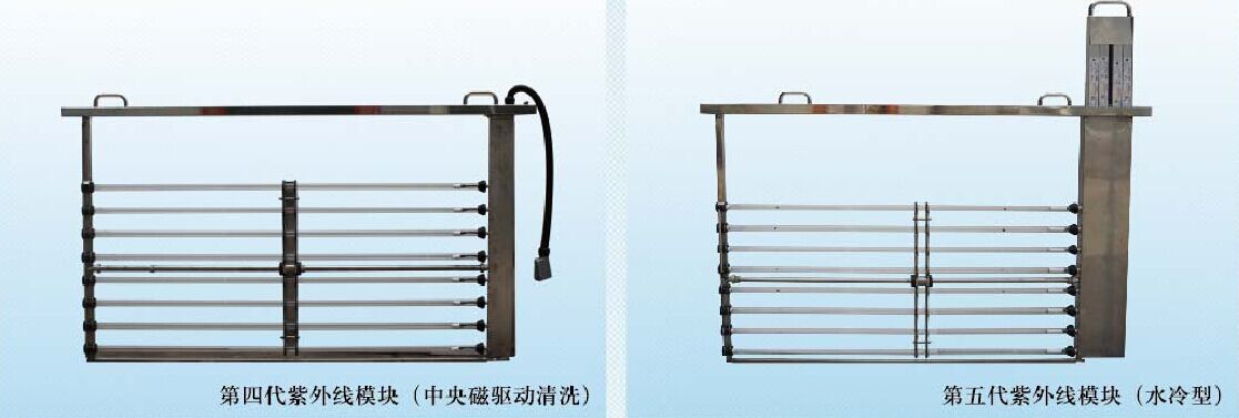 5)根據(jù)客戶處理水量、水質(zhì)及殺菌要求等不同情況,也提供每個(gè)模架3支到12支燈管的多種設(shè)計(jì),模架標(biāo)準(zhǔn)設(shè)計(jì)為8支燈管。采用優(yōu)質(zhì)不銹鋼材料制造,電線電纜密封在清洗模塊內(nèi),且有獨(dú)特的固封技術(shù),不會暴露在污水和紫外線中。