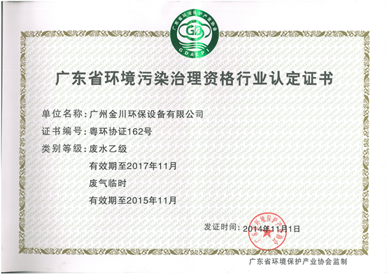 熱烈祝賀我司順利取得廢水乙級(jí)治理資質(zhì)證書