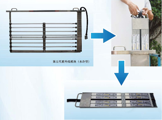 5、模塊標準設計為8根燈管,采用優(yōu)質(zhì)不銹鋼材料制造,根據(jù)客戶處理水量、水質(zhì)及殺菌要求等不同情況,提供3-12根燈管的多種設計,電線電纜密封在清洗模塊內(nèi),且有獨特的固封技術,不會暴露在污水和紫外線中。